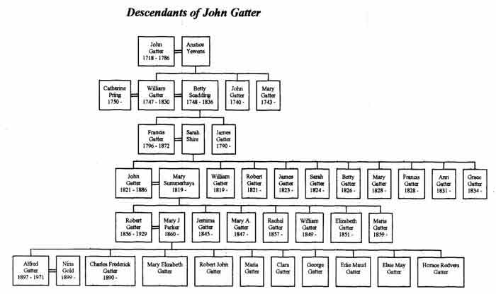 Gatters of Devon/Cornwall (today in Ohio & Texas) The Gatter families that live in Ohio and Texas (USA) today can be traced back to Devon. On 29th of April 1920 Arthur John Crewyze Gatter (1894-1980) came from Redruth, Cornwall (on the south-western most tip of England, surrounded by the sea from 3 sides) to the United States after having served in Her Majesty's Navy in WW I. His father was Edwin Gatter, born ca. 1865 (a resident of Otterton in Devonshire, England), who married Evelyn Jane Crewys. Edwin is likely to be the son of John Gatter, baptized 09 Aug 1845 at Otterton (in the 1881 Census listed as "John Gates", in 1901 Census mentioned as "Farm Labourer") and of his wife Emma, born ca. 1846. But we have no proof of this yet and still need to verify this in the parish registers.