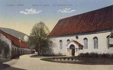 The houses were built perpendicularly to the street, and consisted of a series of adjoining rooms, with the parlor on the end which faced the street, and sheds for domestic animals on the opposite end. Long covered porch ways extended the full length of the house. The Swabians were known for keeping their houses and gardens clean and carefully maintained. Each houseplot was surrounded by a fence, and the courtyard within the fence contained grape vines, fruit trees and the household garden. The streets in the villages were wide, and were used as pathways for community activities, such a baptism, wedding and funeral processions. Cattle were also led down the street to the common pasture in the surrounding area of the village. The streets, too, were always kept clean.